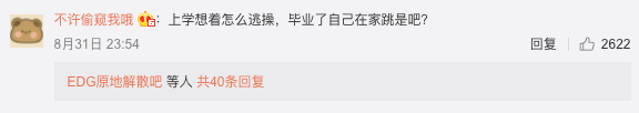 (One Weibo user commented: "When you were still at school, you only thought about how to escape from the group exercise; now that you graduated, you all of the sudden exercise at home by yourself?")