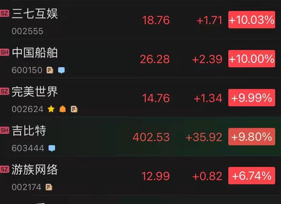 (Note: red color in China means stock price rising)