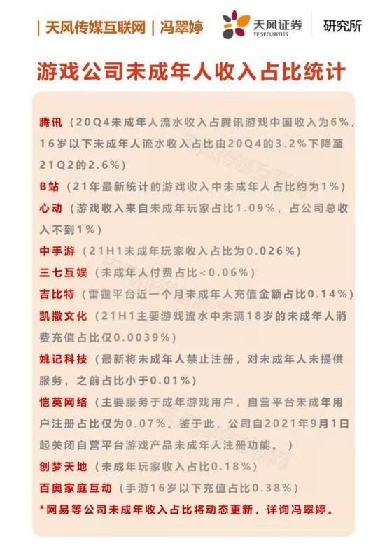According to 3rd party analysis, underage players only contribute a very small portion of revenue for most major game companies. Tencent Games' FY 2021 Q4 report shows only 6% of their gross income coming from underage players, and this portion is getting smaller. CFO of NetEase also claims that players under the age of 18 only contribute about 1% of the company's gross revenue from video games. All these statistics show that the gaming industry's short-term revenue would not be affected that much, even after losing most of the underage player base.