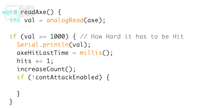 Creating the resource collection tools was actually not complicated: Teenenggr tied a vibration sensor to the tools and then wrote some code to link the action with Minecraft so that each swing got its own feedback in the game.