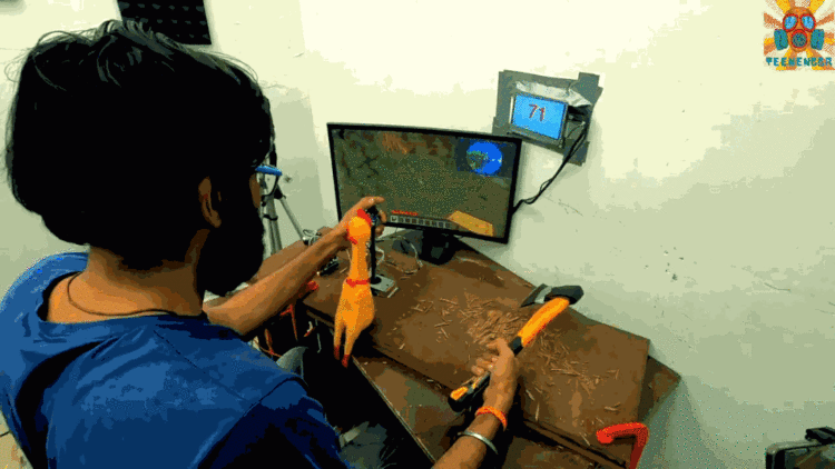 In fact, this is not the first time Teenenggr has tried to make the game much more immersive. He used an industrial motor's vibration to simulate a firearm's recoil, eventually making his monitor fall off the table.