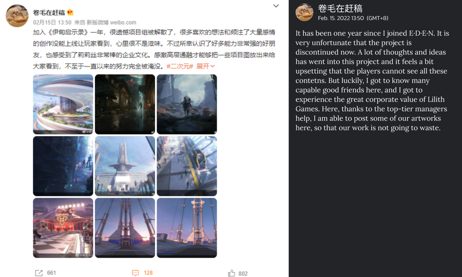 Recently, there have been a number of posts claiming that E·D·E·N, the anticipated Anime game by Lilith Games, has discontinued production. The authenticity of the news was further confirmed when members of the E·D·E·N team, including the Game Designer and the Content Designer, updated their career profiles to ‘seeking employment’ on relevant jobhunting platforms. A few of the original artworks are now available on Weibo as members of the team do not want their work to ‘go to waste’. Lilith Games has not yet released any comment on the news as of the press time.