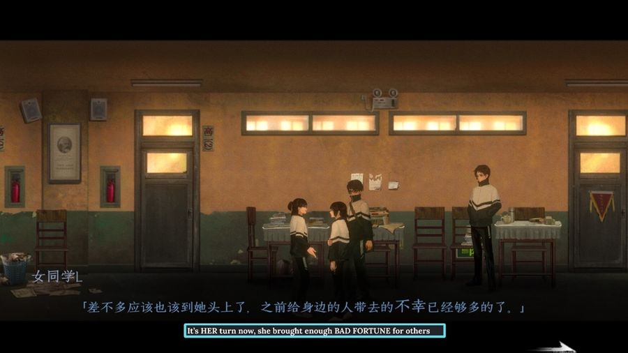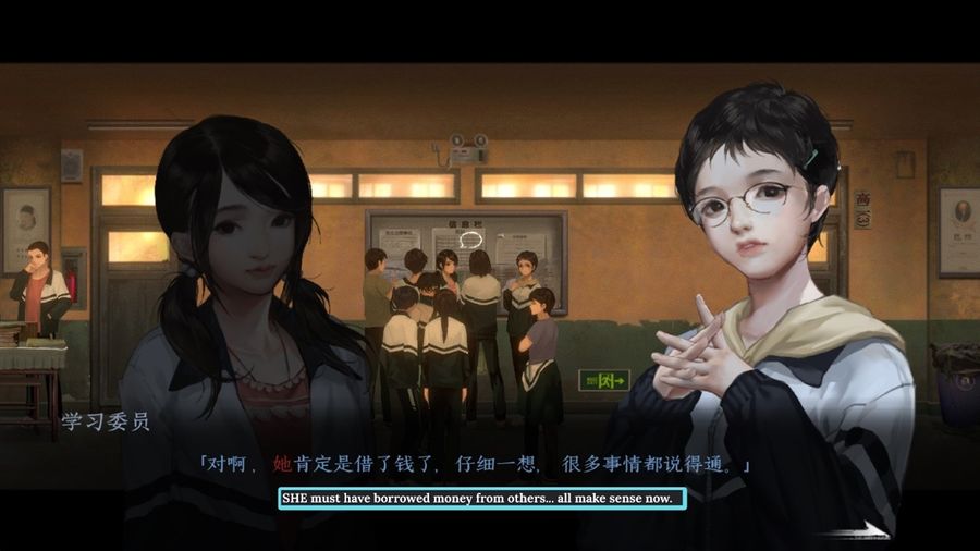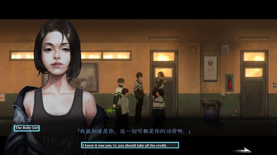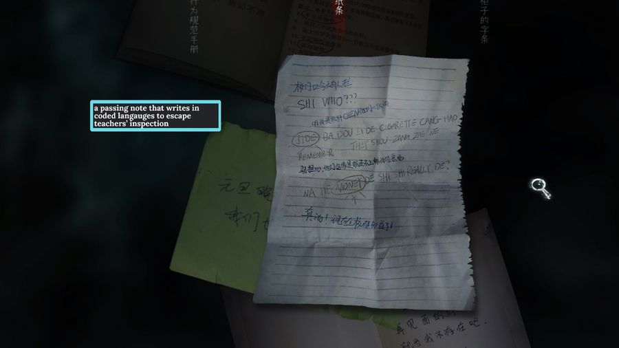 The game adopts a 2D side-scrolling setting with a nostalgic vibe. The oil painting art direction also adds a mellow but mysterious feeling to the story. While the accurate portrayal of a 90s Chinese public school allows players to immerse themselves into the game right away. The interactive items are cleverly designed. Clues are written on birthday cards, bad-taste magazines, and passing notes in Chinese, English, and Pinyin cipher. The everydayness of the interactive elements cast a heavier shadow on the abuse Xia has been through.