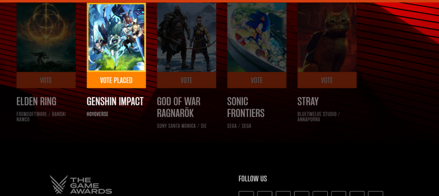 As a result, about 80% of the total votes in the Player's Voice were for either Sonic Frontiers or Genshin Impact. The voting page of TGA was not working properly and eventually went down due to the large volume of voters. When it was back online, people found they could no longer see the vote results.